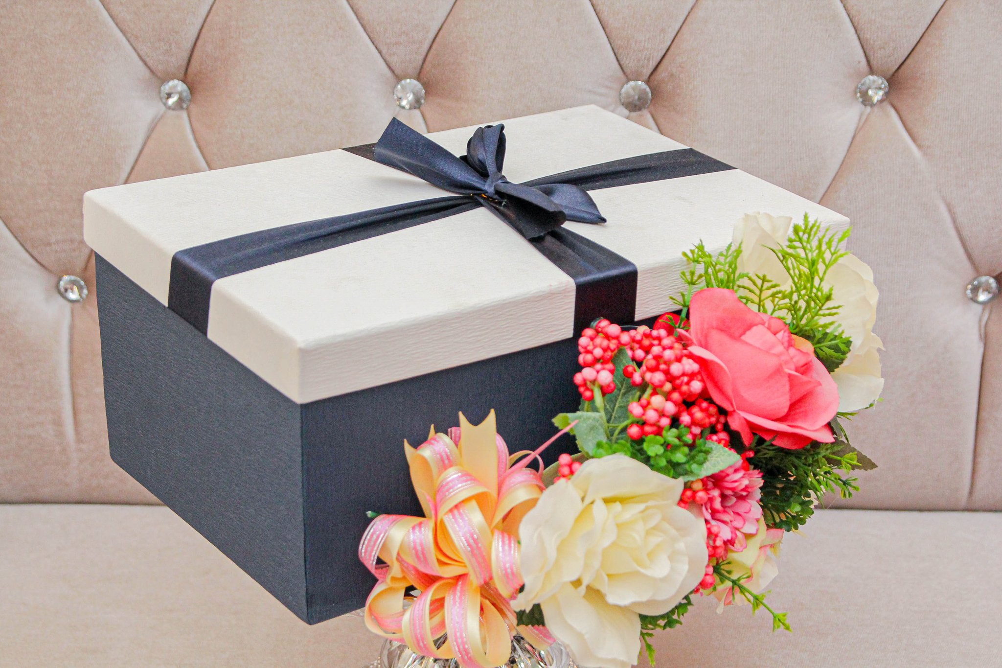 Prinsip dasar dalam membungkus kotak seserahan adalah tetap memperlihatkan isi kotak.