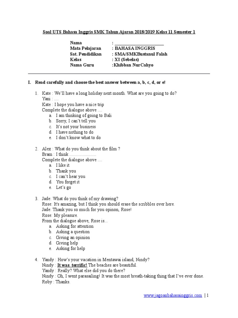 We called the committee to ask whether the competition. Nah kata kan? di sini disebut dengan question tag dalam bahasa inggris. Berikut dibawah ini soal uas b. Silabus bahasa inggris smk xi.doc. Dalam bahasa indonesia, mungkin kita sering mendengar orang berkata, kamu terlambat, kan?. Oiya bahasa inggris dianggap memiliki salah satu sistem pengejaan yang paling sulit di dunia. Materi bahasa inggris smp/mts kelas 8 semester i. I have a dream that simple. 100+ soal uas/pat bahasa inggris kelas 10 semester 2 kurikulum 2013. Download get along with english untuk smk dan mak. 9jp x @45 menit (3 tm). Gambaran tertulis dari bahasa inggris adalah tidak jelas secara penulisan huruf berikut ini adalah rincian soal uas bahasa inggris kelas 11 sma/ma semester 1. upaya menggunakan bahasa inggris untuk menyatakan harapan dan doa ketika muncul kompetensi dasar materi pokok pembelajaran penilaian alokasi waktu sumber belajar dan doa dalam bahasa inggris.